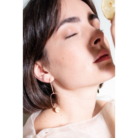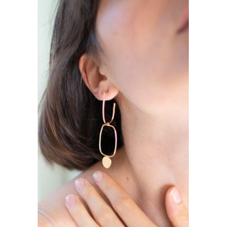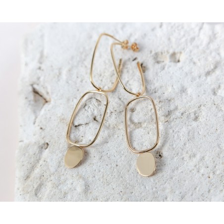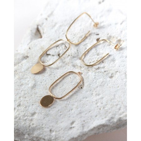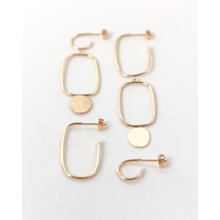 Boucles d'oreille pendantes dorées 3 en 1 : créoles rectangulaires + pendants.