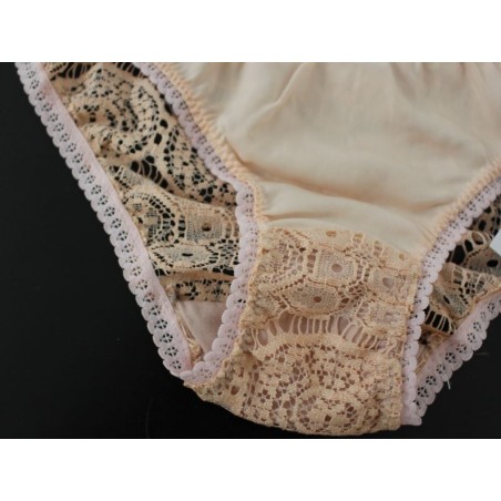 Cette culotte fantaisie est entièrement en coton, avec un dos transparent en dentelle.