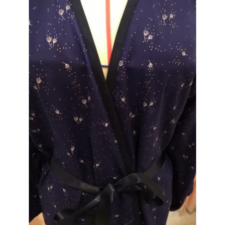 Ce kimono se porte en déshabillé d'intérieur ou en veste légère.