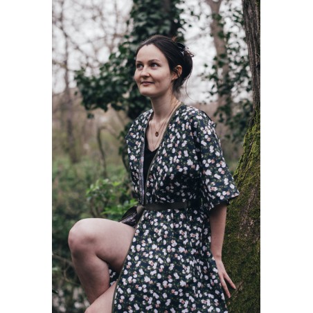 Ce kimono se porte en déshabillé d'intérieur ou en veste légère.