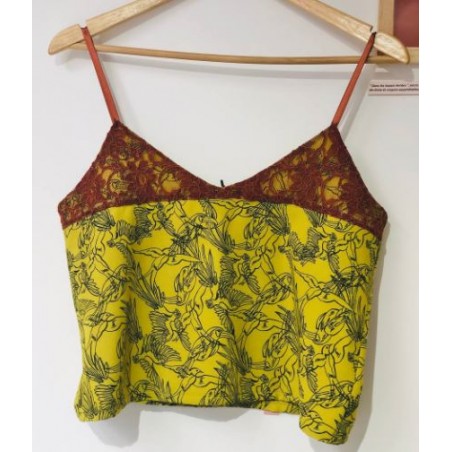 Ce débardeur crop-top bicolore en viscose douce et souple est une pièce unique.