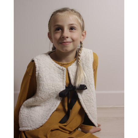 Gilet de berger sans manche, encolure ronde, fermeture réversible par un ruban