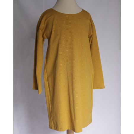 Robe en jersey imprimé petits pois blanc sur fond jaune moutarde